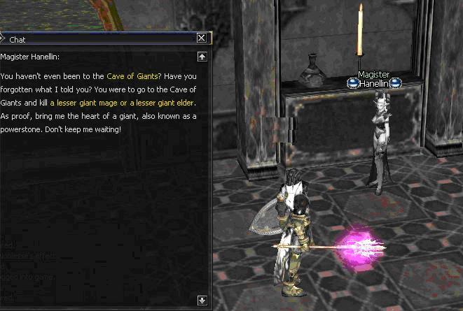 1- Primeiramente vá até a Dark Elf Guild, na cidade de Aden e fale com a Magister Hanellin.